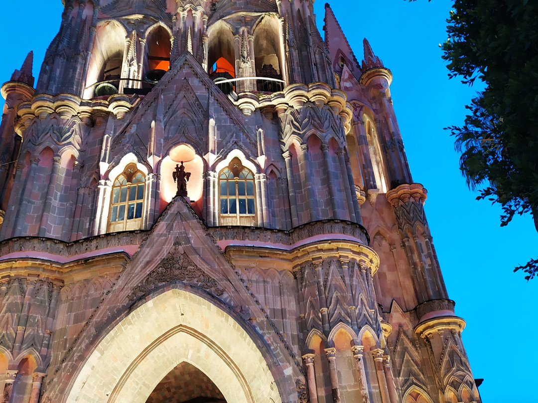 这座教堂是市中心的地标性建筑,所以如果你在圣米格尔德阿连德,你会看到这座教堂。记得白天和晚上都要为它拍照因为你会发现景色令人震惊。在教堂旁边的广场上有很多商店、餐馆和其他教堂,游客们最好注意一下,街道上会有很多铃声和汽笛声。