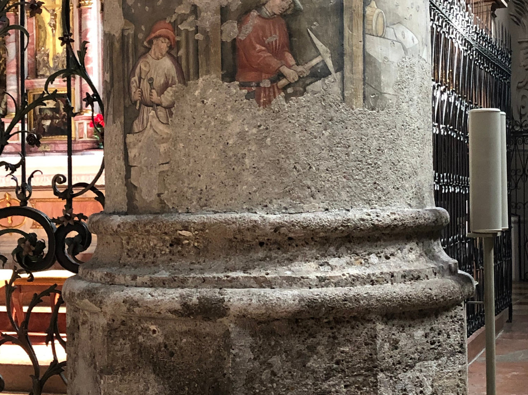这是一个有趣的教堂,一些墙壁上有一些非常古老的绘画,非常典型的奥地利教堂风格。管风琴很大;我们很幸运,那天晚上音乐会的管风琴手在我们参观的时候正在练习,所以我们听到了美妙的音乐。
