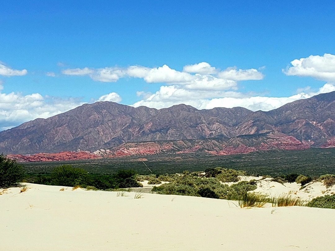 虽然在如此众多的红色山脉中发现一片沙丘区域令人惊讶,但如果你来自有沙丘和/或沙滩的地区,那就不足为奇了。风大的时候绝对不建议去。我们去的时候阳光明媚,但风之神(Zonda)的风实在令人难以忍受。 几乎站不住脚。沙子飞扬得飞快,甚至无法行走。