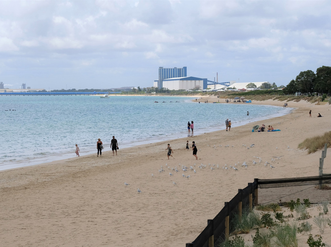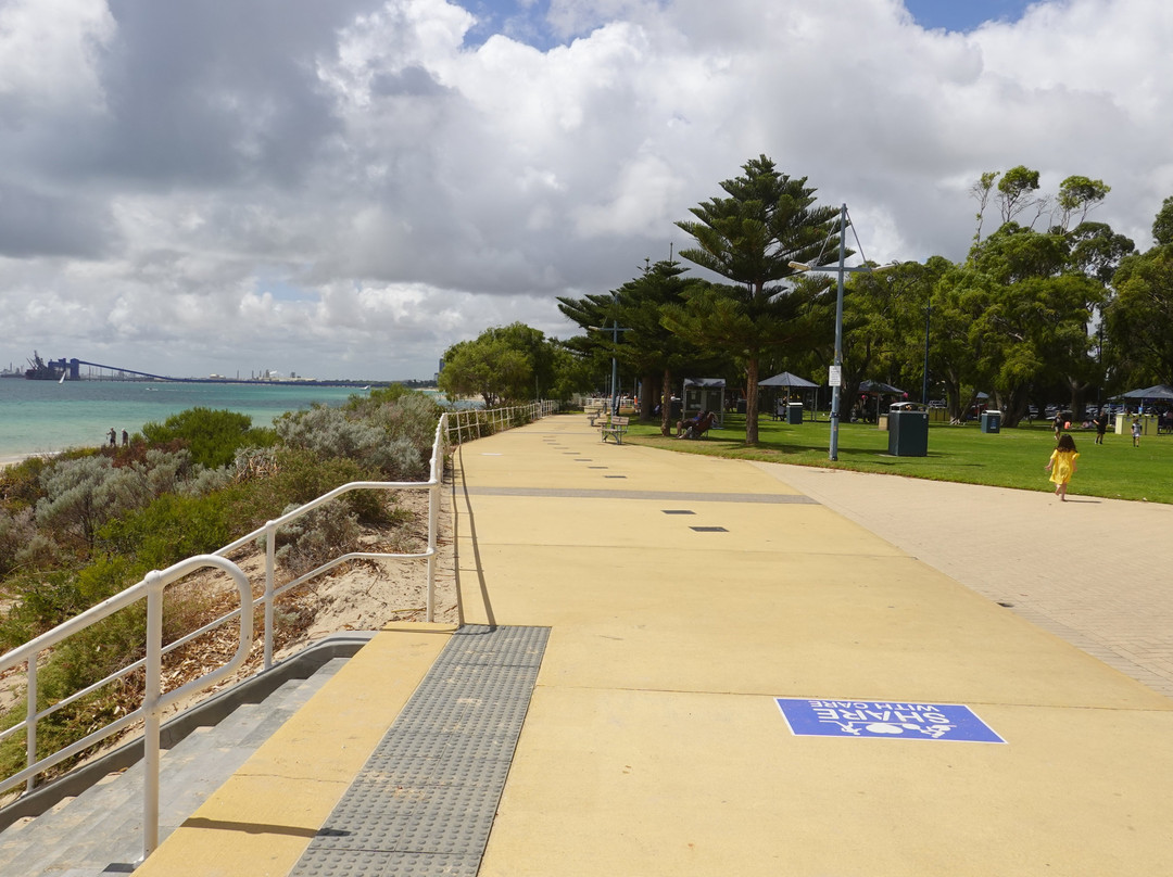 一个适合家庭的,宽阔的草地公园,旁边的海滩上有遮荫的树木,有长椅与桌子和烧烤架。这里还有秋千。可以停车,但夏天周末会很繁忙。在海湾潜水会看见沉没的飞机和船只。附近有很多咖啡馆和餐馆。其他两个方向的海滩人就没那么多。在铁路线以南的地方,这里是珀斯所有海滩中最好的,也是最容易到达的。乘火车和公共汽车很容易到达这里。