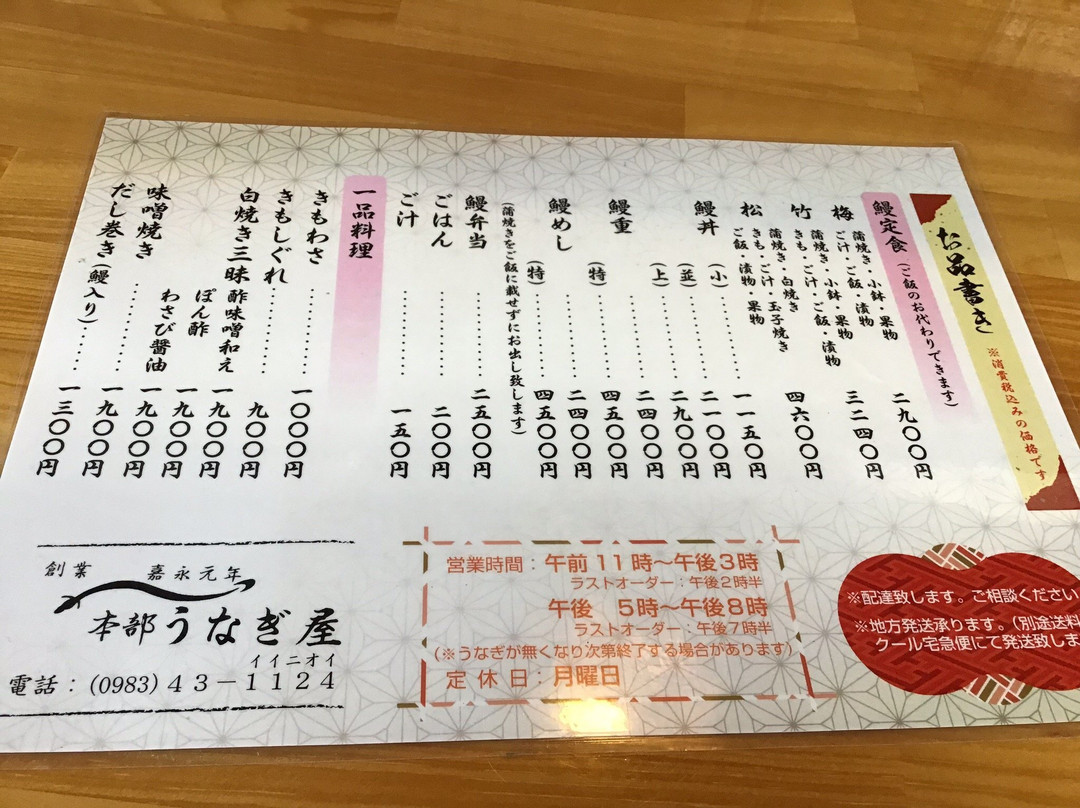 本部うなぎ屋
