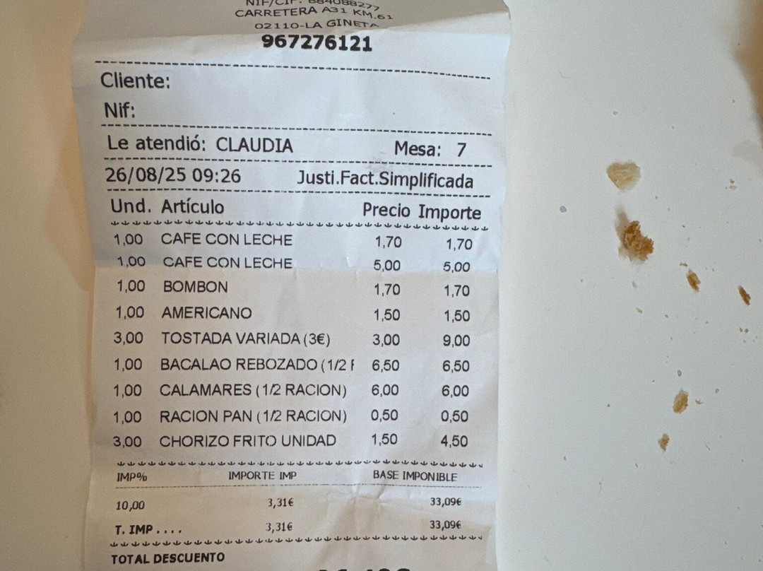 La Gineta排名第 3 的餐厅(共 8 个)