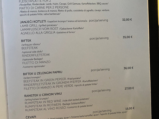 ¥¥ - ¥¥¥,欧洲,克罗地亚菜,餐厅