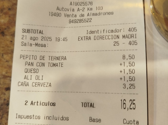 Almadrones排名第 1 的餐厅(共 2 个)