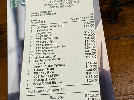温哥华排名第 40 的餐厅(共 2,703 个)