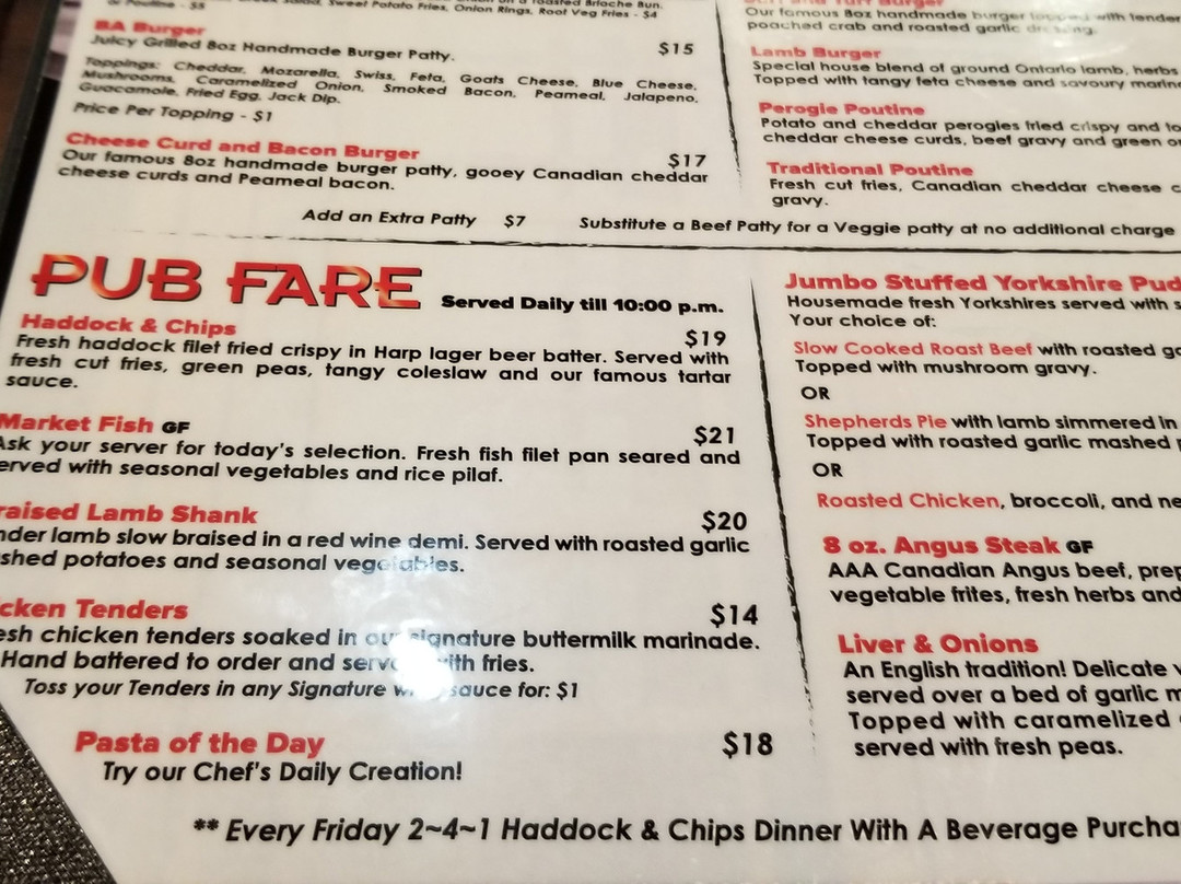 ¥¥ - ¥¥¥,美式烹饪,爱尔兰菜,酒吧餐,酒馆,加拿大菜,餐厅