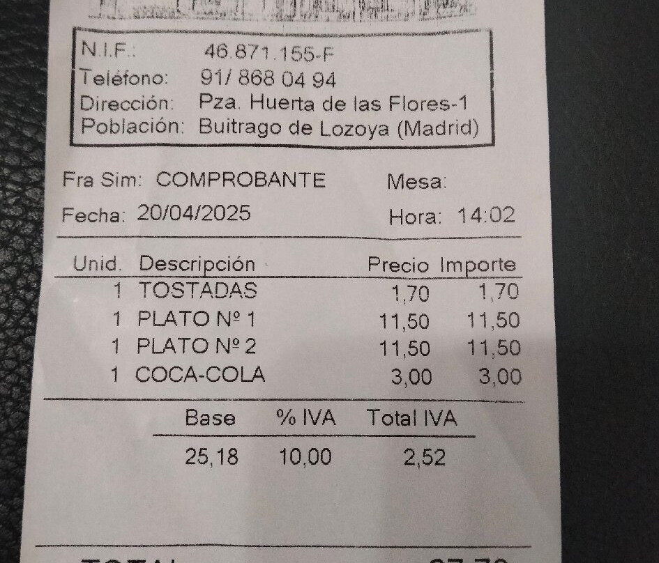 Buitrago de Lozoya排名第 4 的餐厅(共 19 个)