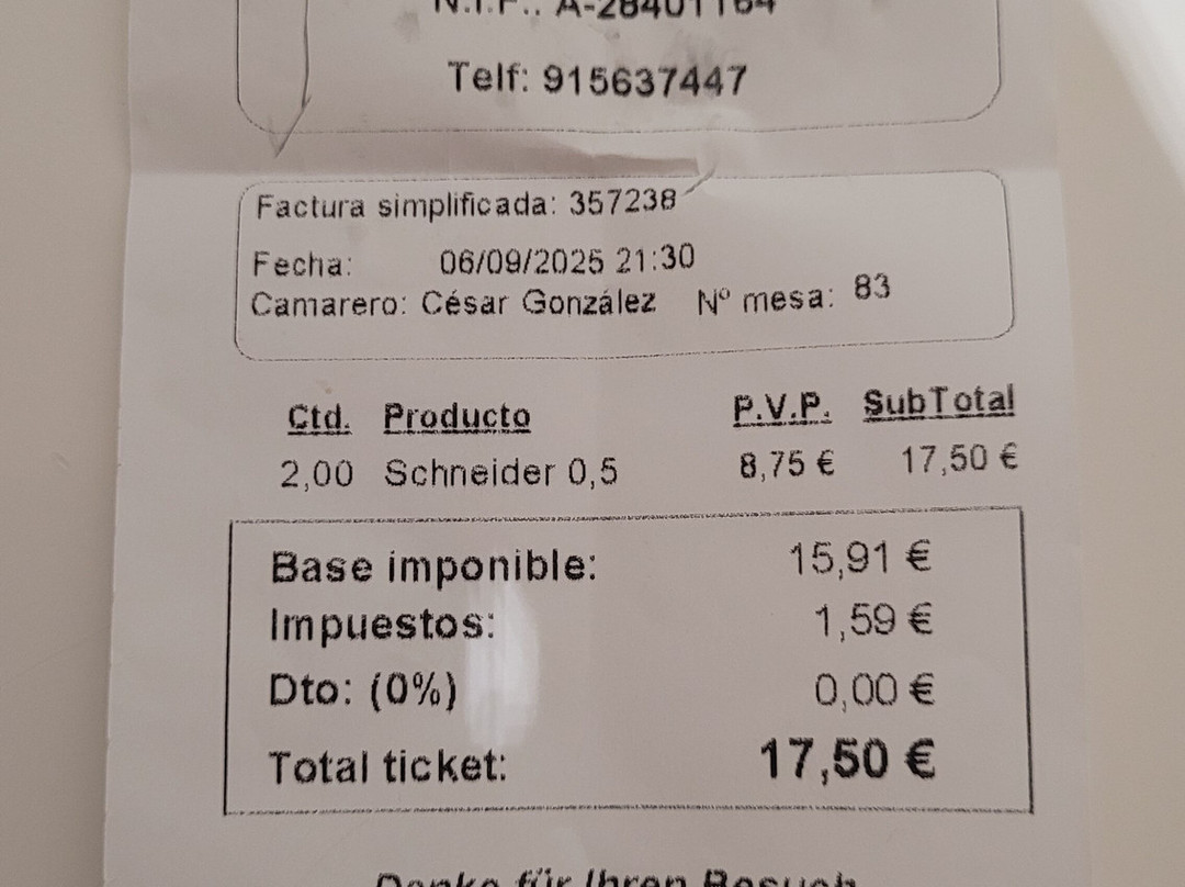 马德里排名第 2,821 的餐厅(共 13,127 个)
