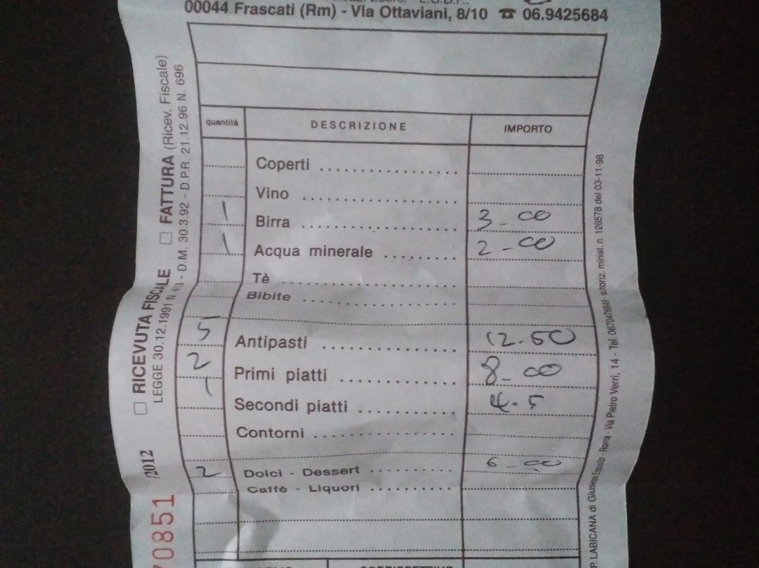 弗拉斯卡蒂排名第 126 的餐厅(共 212 个)