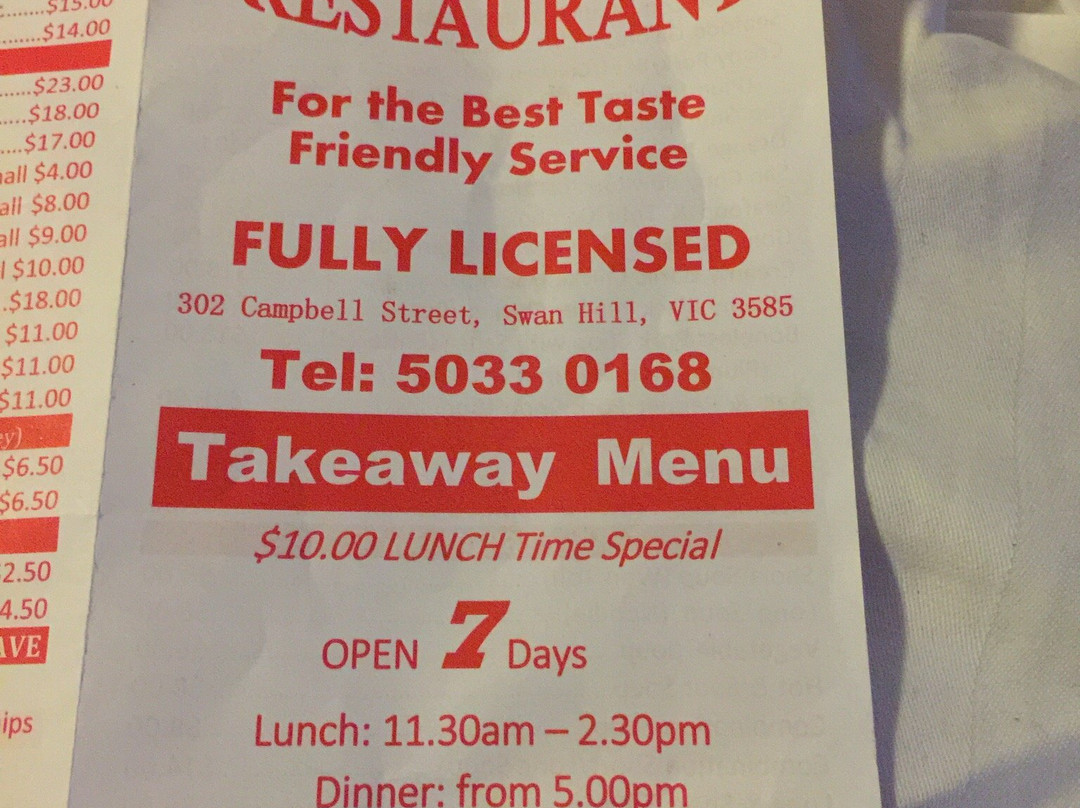 Swan Hill排名第 9 的餐厅(共 51 个)