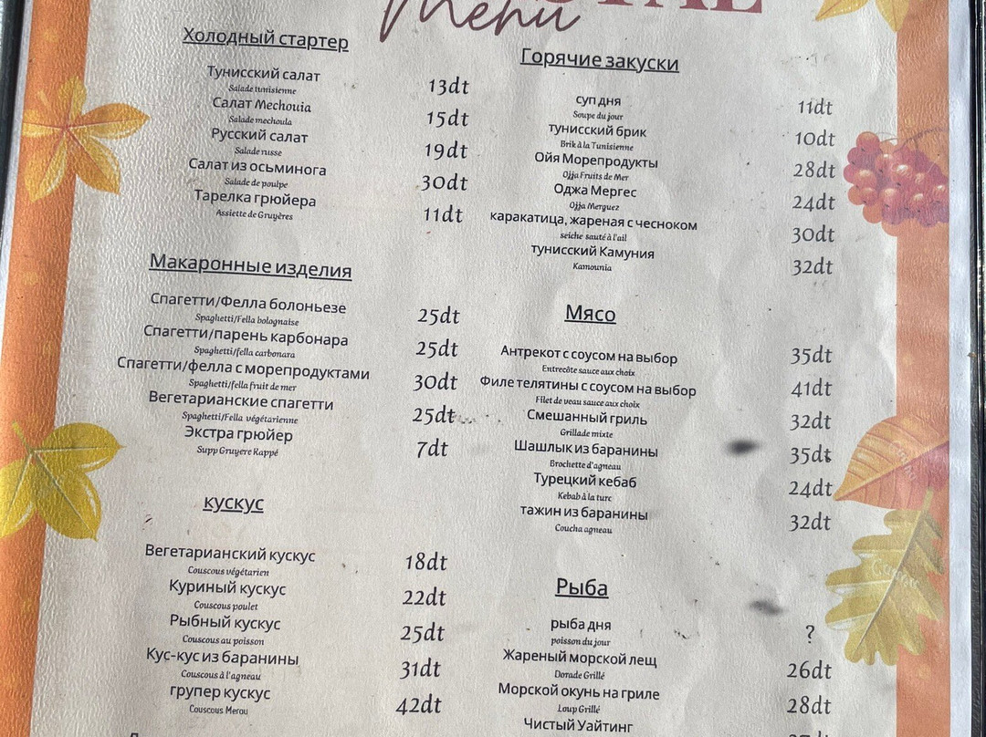 ¥¥ - ¥¥¥,法餐,披萨,亚洲料理,街边小吃,突尼斯菜