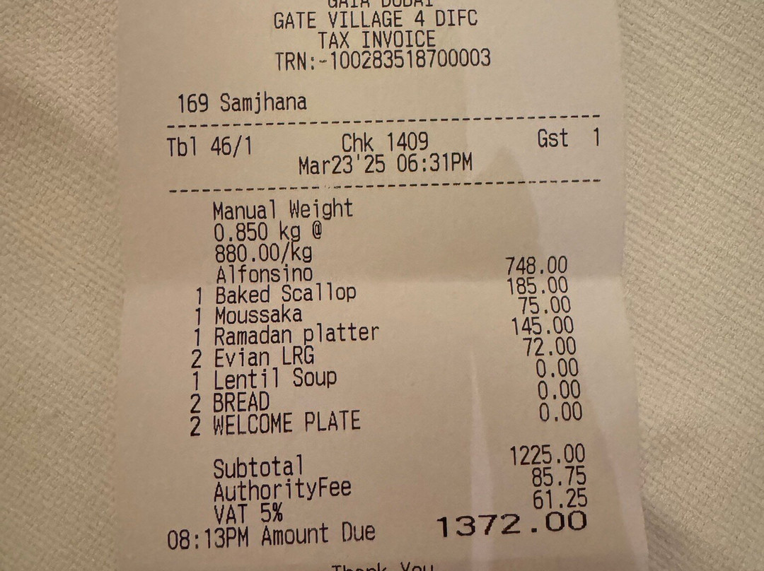 迪拜排名第 1,312 的餐厅(共 11,119 个)