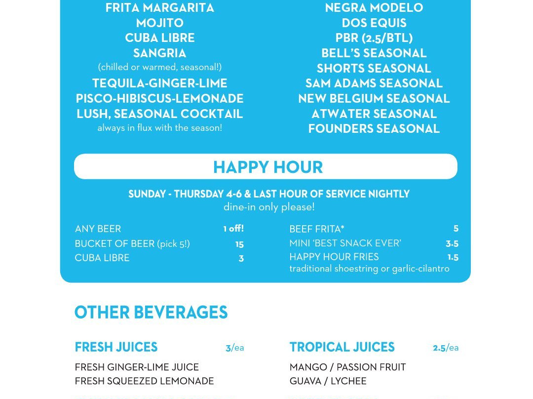 ¥¥ - ¥¥¥,拉丁风味,古巴菜,快餐小吃