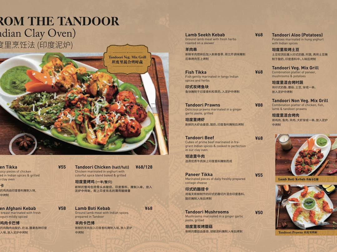 ¥¥ - ¥¥¥,印度菜,烧烤,亚洲料理,巴基斯坦菜,餐吧,现代创意料理,餐厅