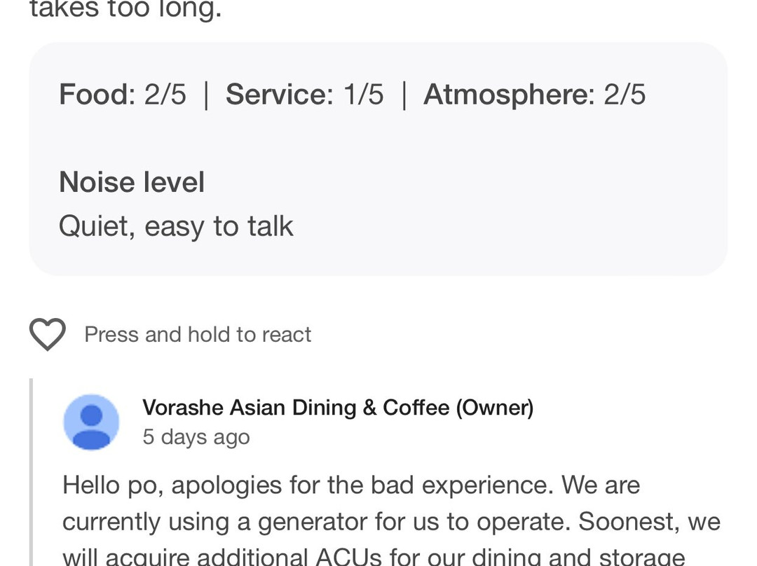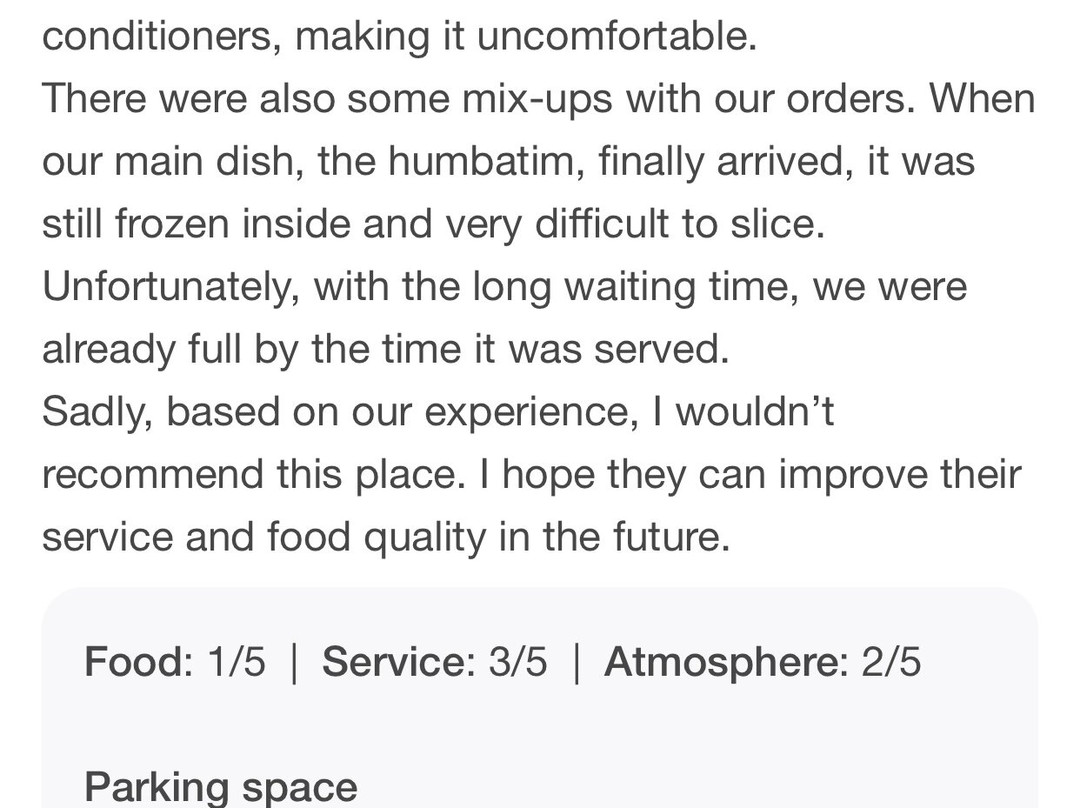 点评未描述用户自己的体验。 点评包含谣言、政治意见或诽谤言论信息。