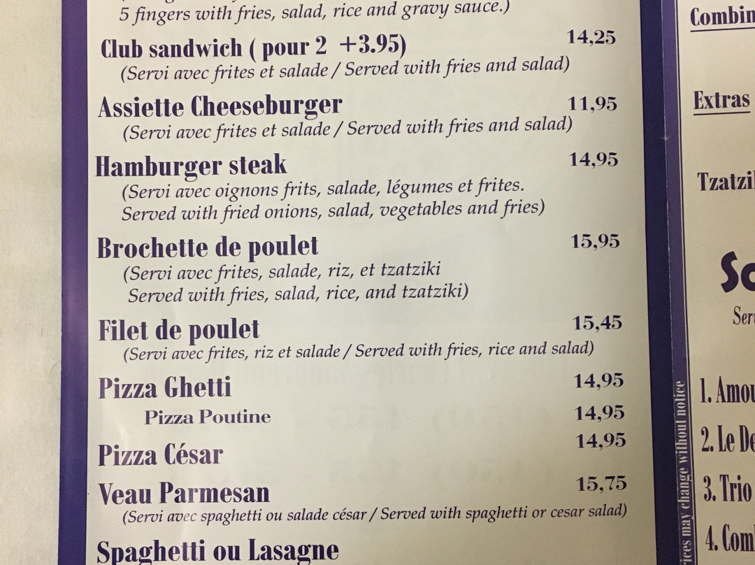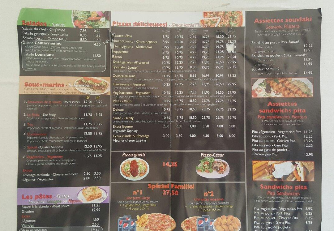 ¥,披萨,加拿大菜,快餐,餐厅
