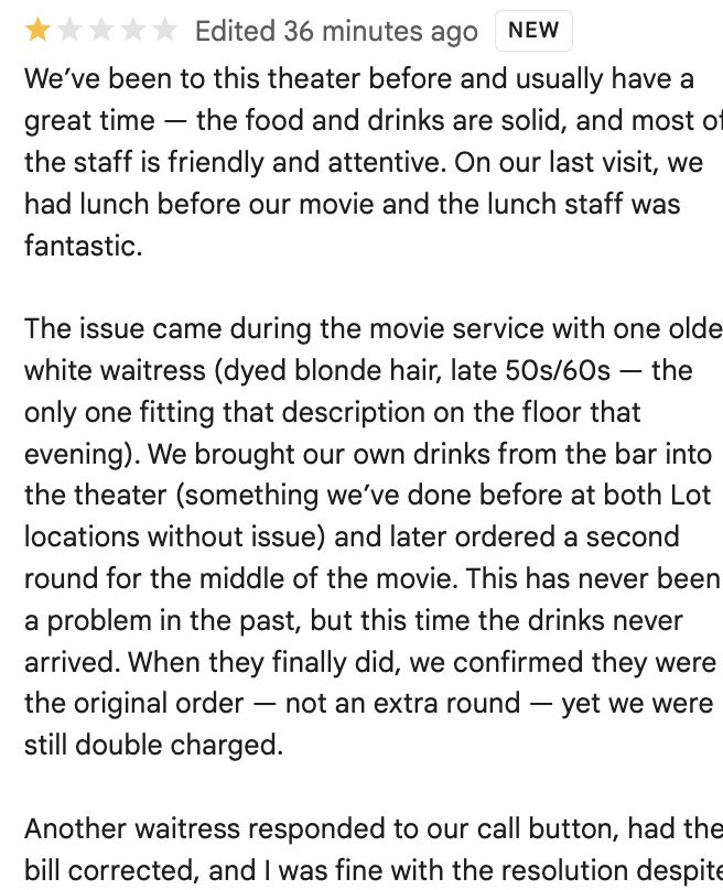 点评包含亵渎言语、露骨评论、仇恨言论、偏见语言、威胁或人身攻击的内容。
