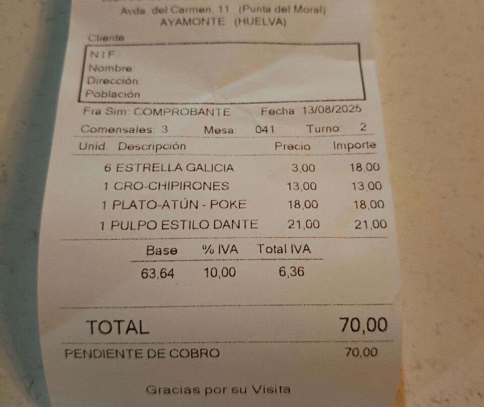 Ayamonte排名第 52 的餐厅(共 158 个)