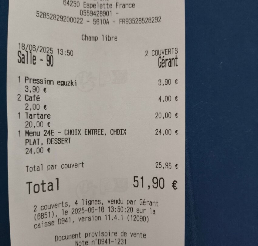 Espelette排名第 4 的餐厅(共 18 个)