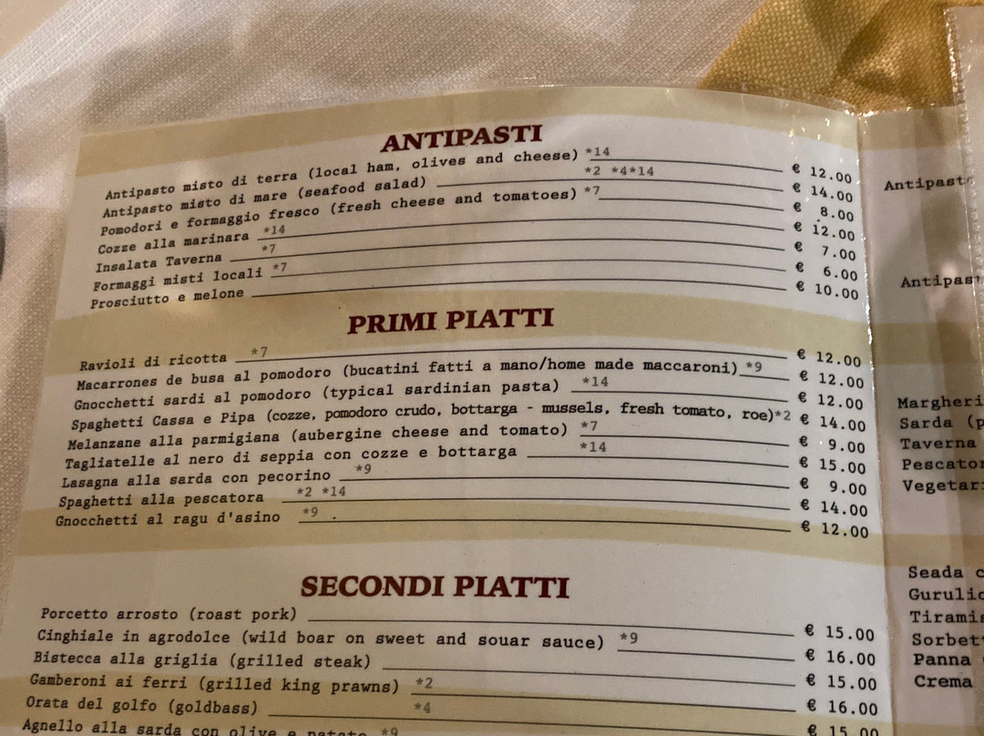 ¥¥ - ¥¥¥,意餐,撒丁岛,意大利南部,餐厅