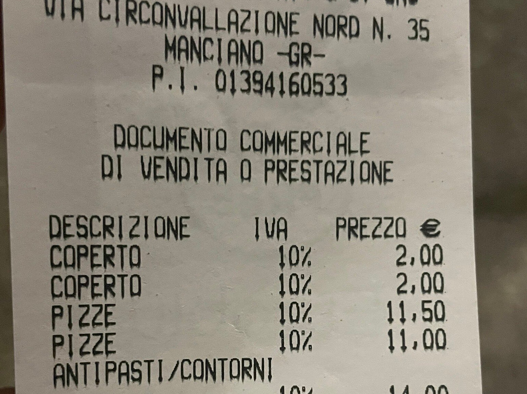 Pizzeria Osée Piatti Tipici