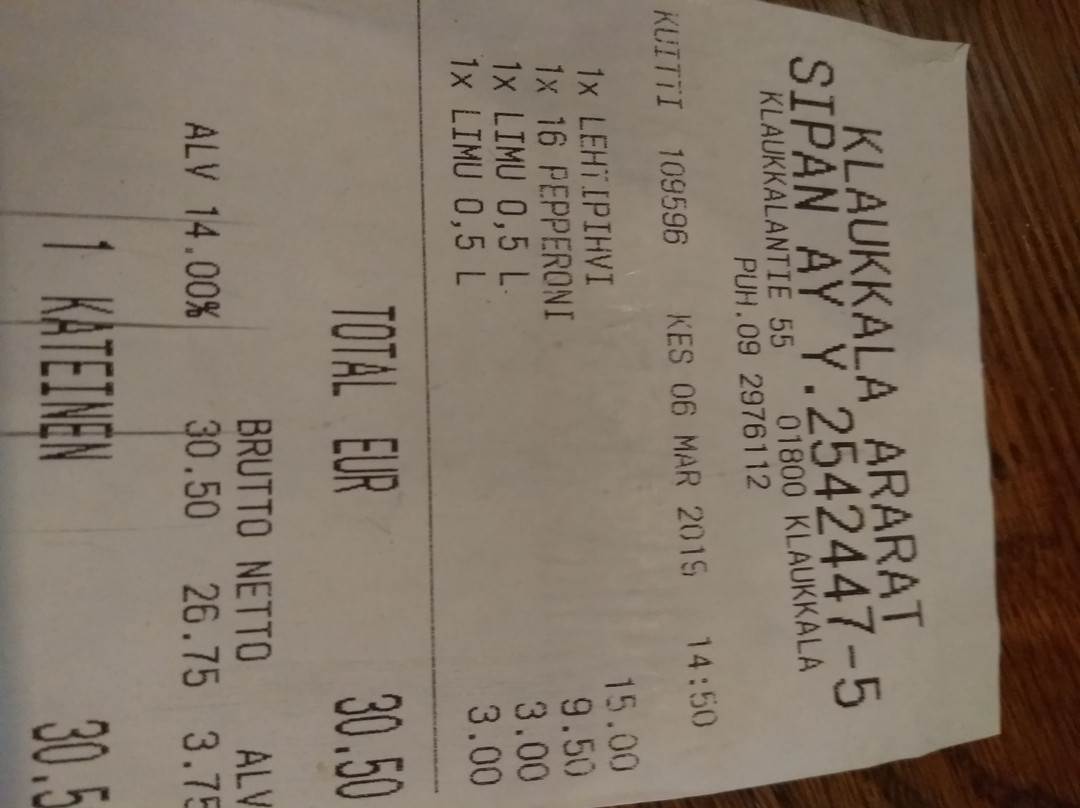 Klaukkala排名第 1 的快餐小吃(共 1 个)