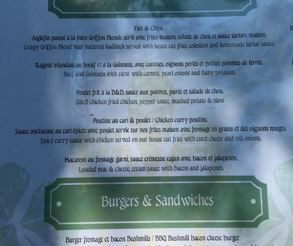¥¥ - ¥¥¥,爱尔兰菜,酒吧餐,酒馆,加拿大菜,餐厅