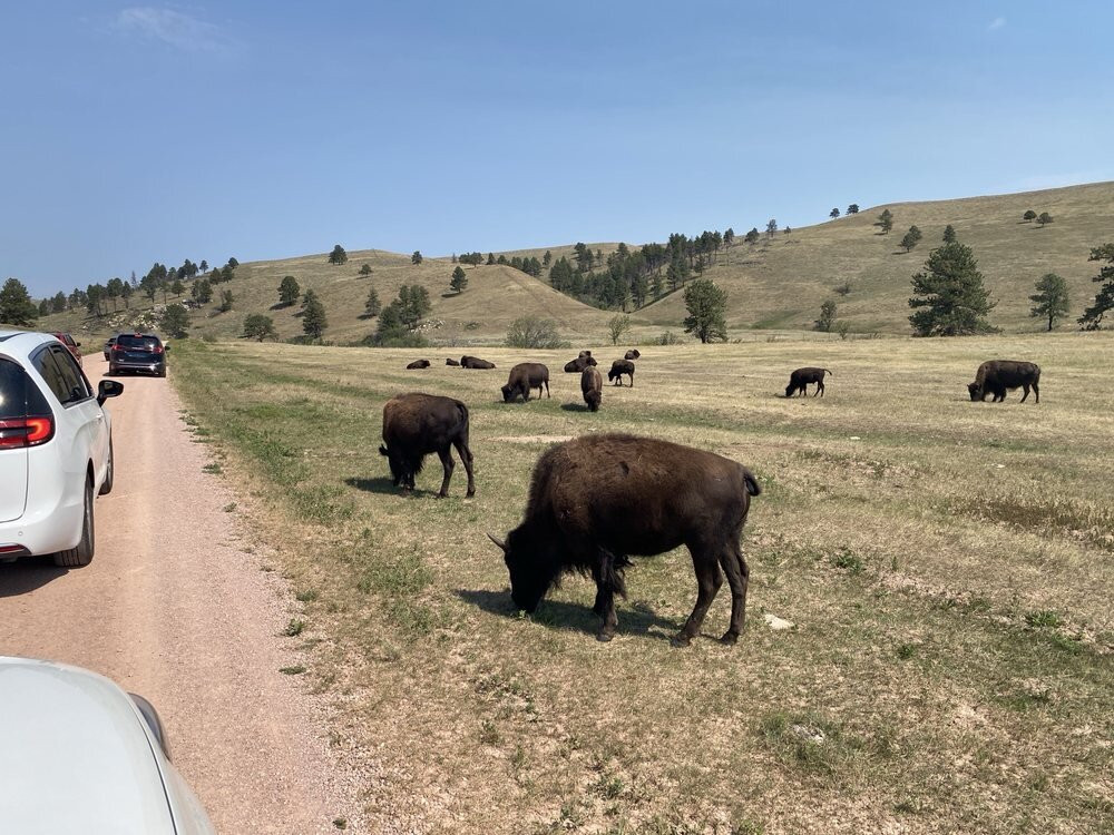 点评:We started off our day at Custer State Park. We began by going into the visitor center, which is an absolute MUST DO. Why? Because when you walk in there is a large scale model of the park and they mark it to show the last reported sighting of bison. The volunteers then showed us how to find that area, and they also showed us another visitor center along the way where they recommended we stop to get further updated information. The bison were located at the southern end of the park, so the beginning of our drive was just through beautiful landscape, without much wildlife at that point.