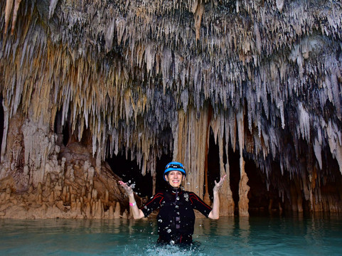 点评:This was one of the most awesome things I've ever done, words can't describe when you are inside swimming in darkness. This was part of a cruise tour, and there were only 9 of us. There are plenty of lockers and towels, and they fit you for shortie wetsuits (not many in small sizes by the time we got there). Helmets are one size, but adjustable. The guide -Aaron- was outstanding and showed us little creatures and explained things, and kept us very safe. The water is definitely cool - so be prepared. You have a choice of talking a walking stick, I probably would have next time as you are not supposed to touch anything. This is definitely not for anyone with balance or clausterphobia issues. The time goes by quickly. There is a photographer with you that takes lot of pictures, they were selling for $30 for 1 or $125 for all, but I got them down to $100. Ok, they were overpriced, but you only do this adventure once in a lifetime. Had a nice buffet at the facility - food was tastey. I am ready to do this again.
