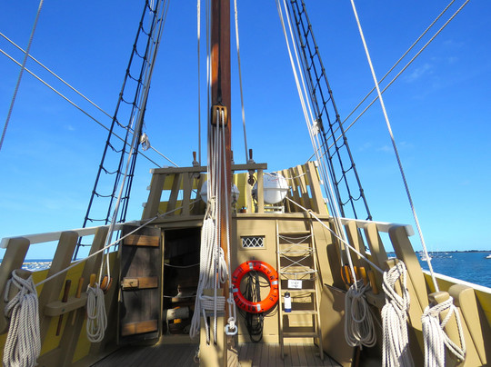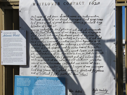 翻译:“五月花二号”是1620年9月载着清教徒前往普利茅斯的那艘船的完整复制品。102名乘客,年龄和性格各异,以及他们的牲畜,挤在船体中部狭窄的“中间甲板”上,横渡大西洋。航程历时66天,他们于1620年11月抵达科德角北端。冬季即将来临,他们的补给也日渐减少。“五月花号”全长仅106英尺,主甲板的宽度也只有84英尺。当我站在这些狭小的空间里,我试图想象这段旅程究竟是怎样的。他们对理想的坚定信念,尤其是对女性而言,足以让他们踏上这段旅程。
