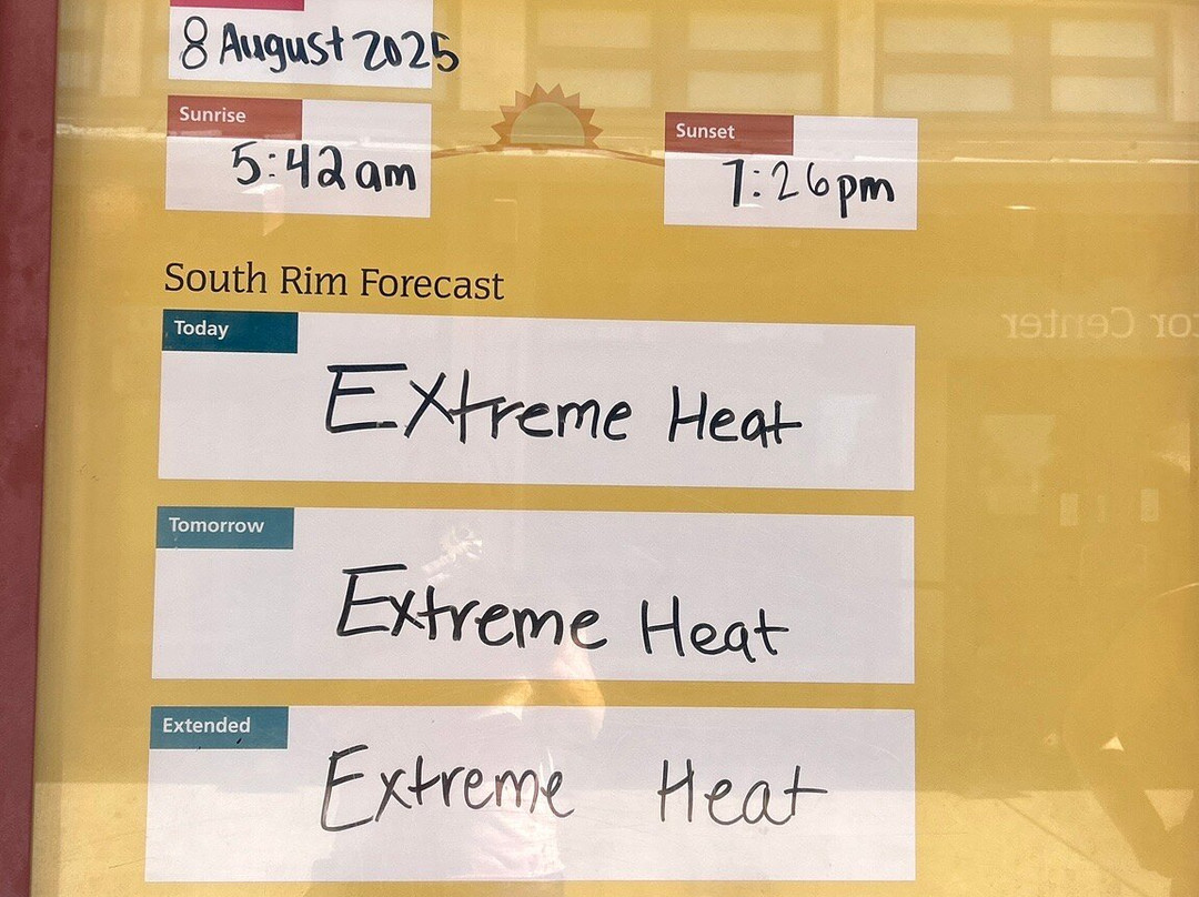 翻译:八月是游览大峡谷的好时节。没错,中午就很热了,但如果你早点起床,在上午 10 点之前进入公园,徒步下山约一英里,避开春季和秋季的拥挤人群,将会是一次很棒的体验。一定要穿好步行鞋!!步行到第一个洗手间时一定要小心谨慎……再走出来可是很费劲的,如果你身体不太好,就会成为公园救援队的危险和负担。如果你徒步下山超过 30 分钟,请务必携带比你认为需要的更多的水。参加导游团可以帮助你了解更多信息并发现岩画……我和一个知识渊博、可以指出岩画的人一起,所以我们没有参加带导游的徒步旅行。边缘小径由铺好的路面和细砾石组成,你也可以随意上下巴士。边缘处的风很大,所以抓紧你的随身物品(帽子/太阳镜/小孩)。