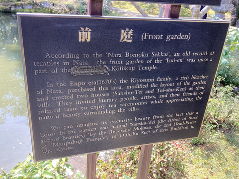 翻译:我们最近去奈良的时候,被带去参观了这座花园,在那里享受了一段宁静的时光。