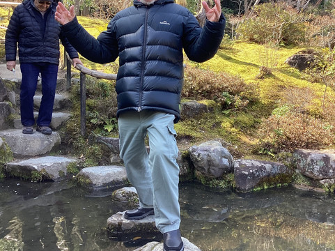 花园里大量运用了岩石和石灯笼,树木花草刚刚走出冬眠,开始抽芽,再过几周樱花就会盛开。