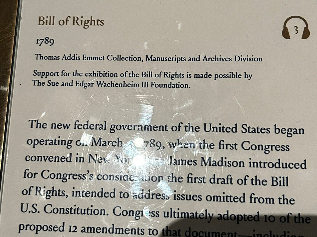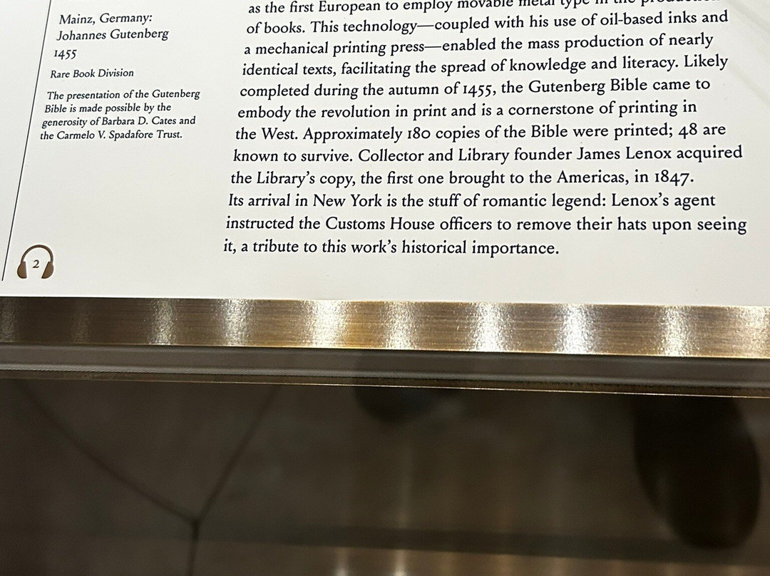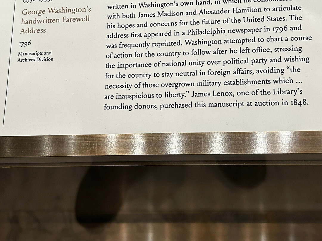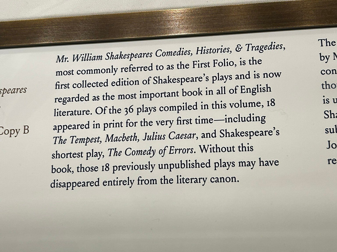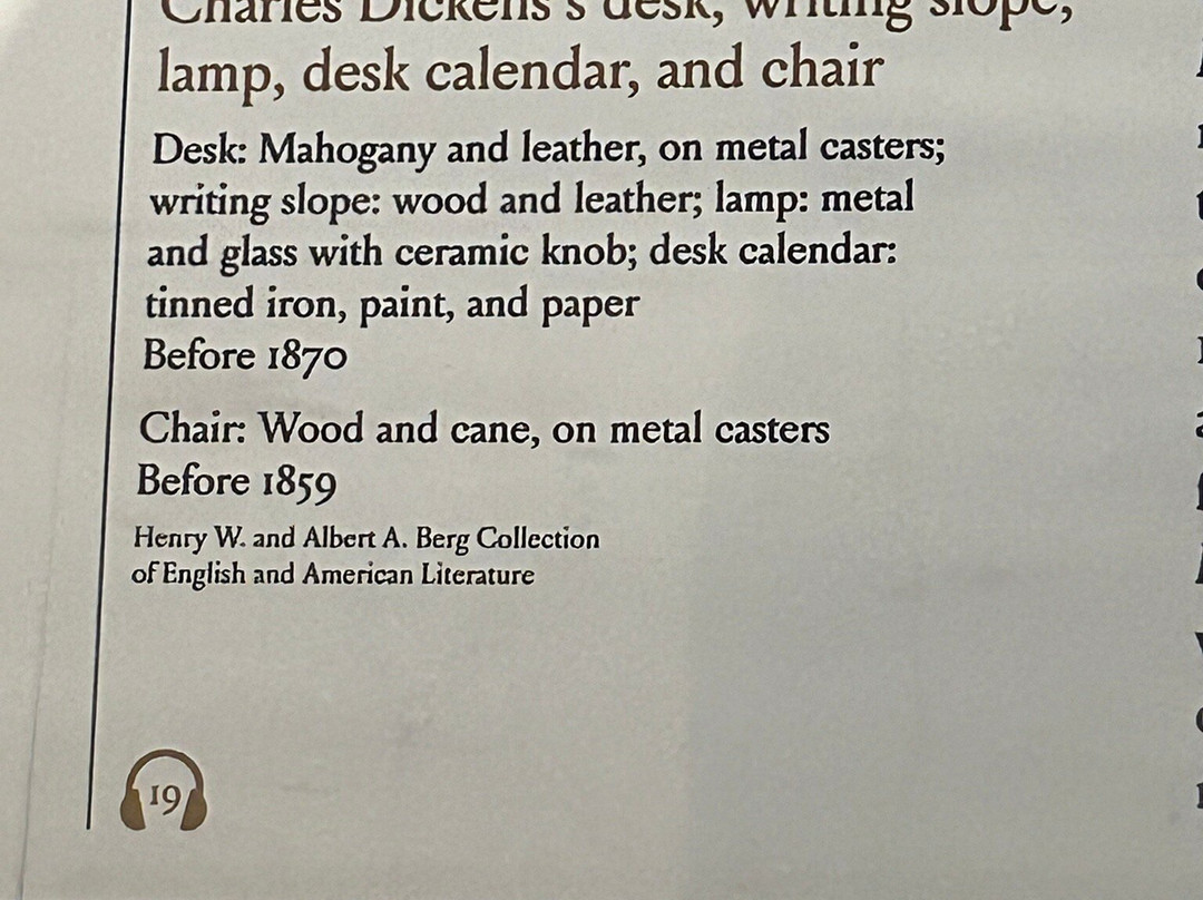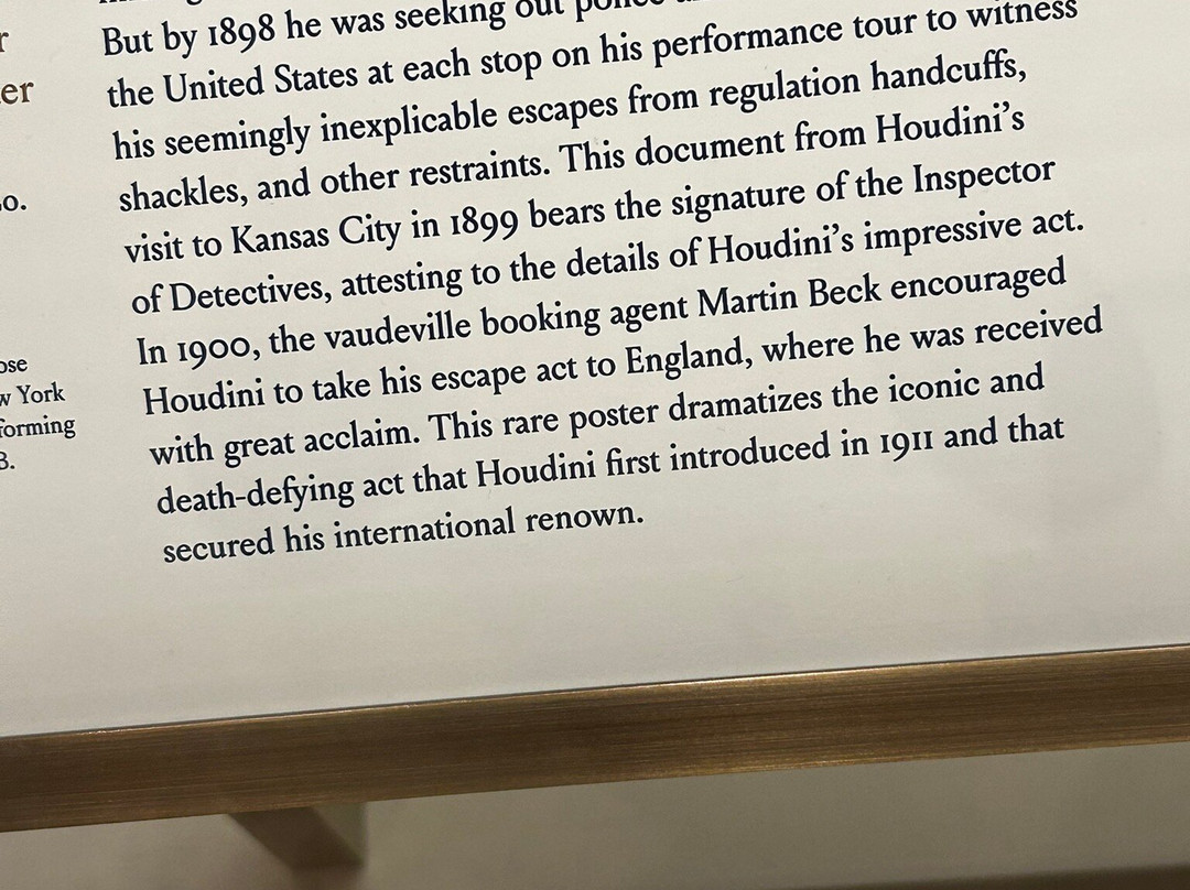 * 珍贵的历史展品,包括1455年的古腾堡圣经、乔治·华盛顿1797年的告别演说、《权利法案》、哈利·胡迪尼的作品、1900年的留声机、1850年的银行账簿、本杰明·富兰克林的肖像、1600年的莎士比亚作品以及查尔斯·狄更斯的书桌