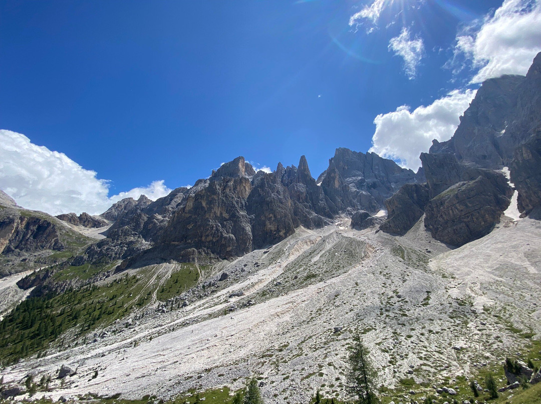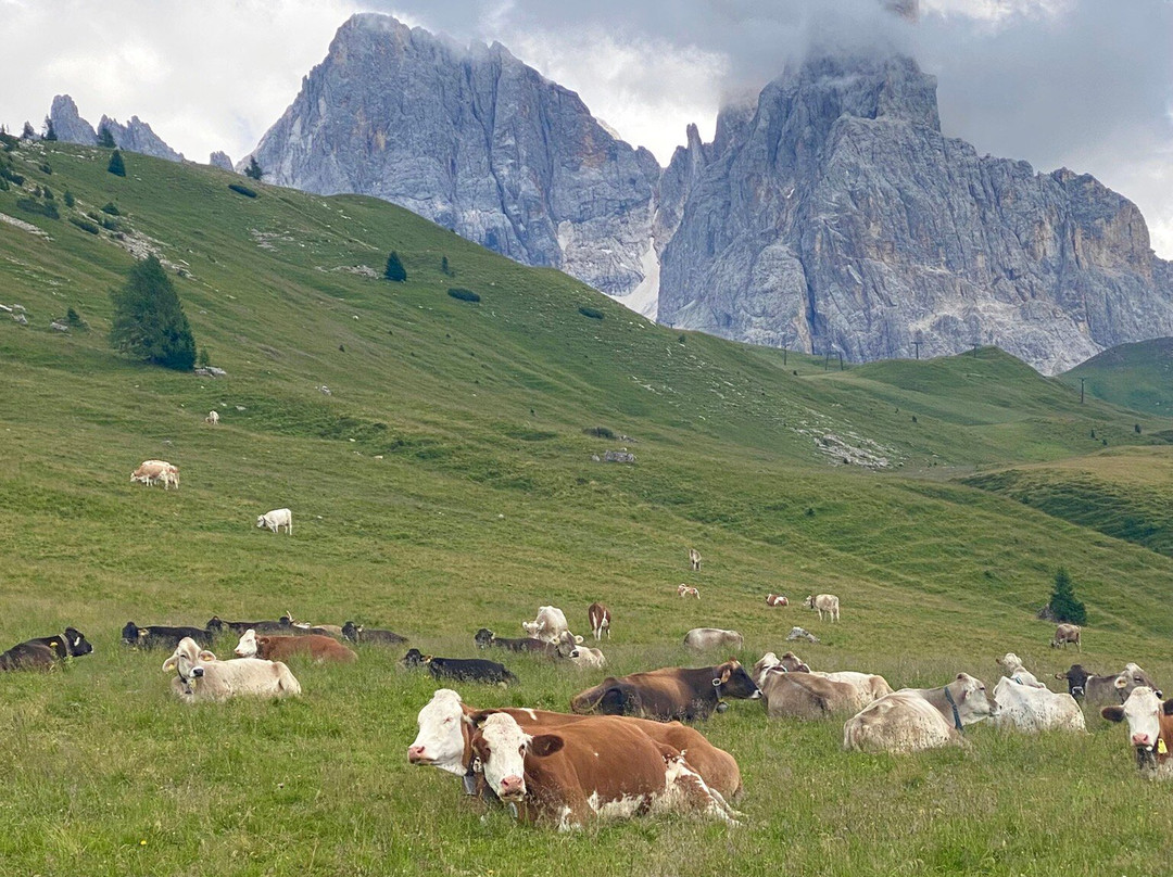 翻译:从帕内韦焦到帕索瓦列斯的路上,卡索尼(Pian dei Casoni)有一个不错的停车场(7欧元),但我建议你继续往上走几公里,在马尔加·维内吉亚(Malga Venegia)附近会有一个大型付费停车场(10欧元)。这样可以省去最初的爬坡,你可以充分利用这段时间延长路线。一开始,感觉就像在里米尼的海滩上,但后来,人群逐渐散去。大约半小时/40分钟后,行驶3.1公里,经过150米的海拔差异,您将到达美丽的Malga Venegiota,然后继续沿着雄伟的Pale di San Martino,在壮观的景色中到达Baita Segantini......另一个海拔差异......(多次停留拍照的时间:1.5/2小时)......这里是必经之路,可以拍摄一个战略要点,但请注意:餐厅不再营业,服务糟糕,三明治价格过高......请自带三明治或继续前往Capanna Cervino(下坡半小时)。然后,您走上通往Malga Juribello的道路(您也可以跳过它以缩短回程,但那里非常美丽,值得一游,尤其是带着孩子!)或通往Malga Venegia的道路......这样,循环就结束了,您可以在这个美丽的malga享用美味的小吃!总距离约为15-18公里,具体取决于您的选择,海拔增加约550米。包括中途停留,全程大约需要6-7个小时。这趟旅程风景优美,非常适合阳光明媚的日子!