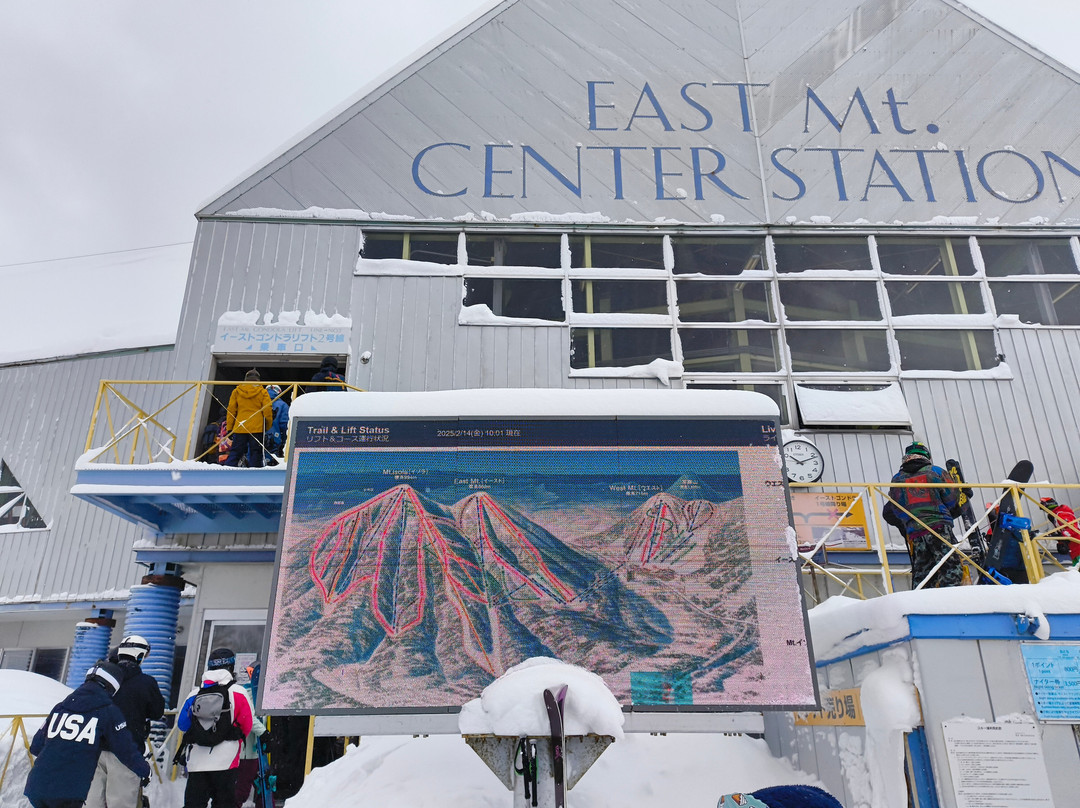 The East side has two mountains, East Mountain and Mount Isola. The carpark goes to the East Mountain Center Station, where you can pick up tickets or ride the gondolas. East Goldola #1 connects and eastern and western areas. East Gondola #2 goes up the mountain. The runs connect to the myriad of lifts on East Mountain and Mt Isola. There is night skiing on the West side, so it would be better to park on that side if you were planning on doing that.