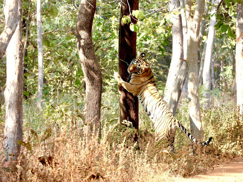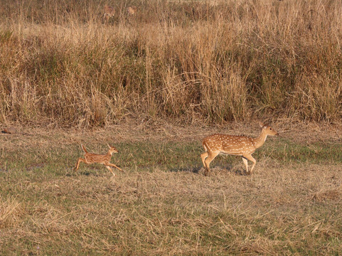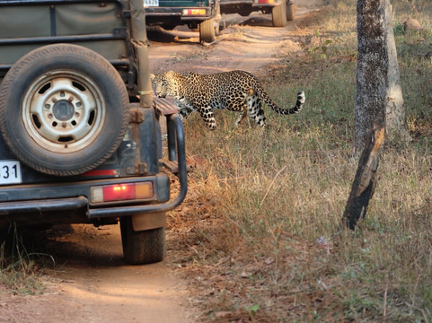 与非洲的野生动物之旅不同,这里的动物数量比较少。在前三次野生动物之旅中,我们只看到了梅花鹿、猴子、鸟类、另外两种鹿、印度水牛、孔雀和懒熊,其中大部分是在第一次就看到了。所以,12个小时过去了,我们竟然没看到老虎,这让我们有点失望!我们每天安排两次野生动物之旅,连续六次。坐了这么久却没看到老虎,真是太让人沮丧了!但在第14个小时,我们终于看到一只老虎从丛林里出来喝水——真是太壮观了,我们是第一辆看到它的吉普车。之后,我们在接下来的游猎之旅中看到了一只豹子,在最后一次游猎中看到了两只老虎——我们停留了大约两个小时观察它们。