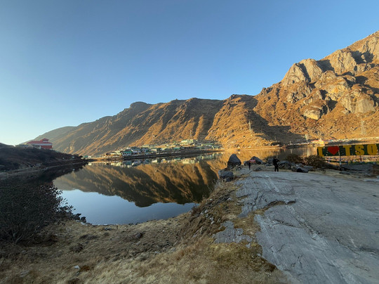 翻译:如果您要去甘托克,不妨去宁静的湖边看看。
