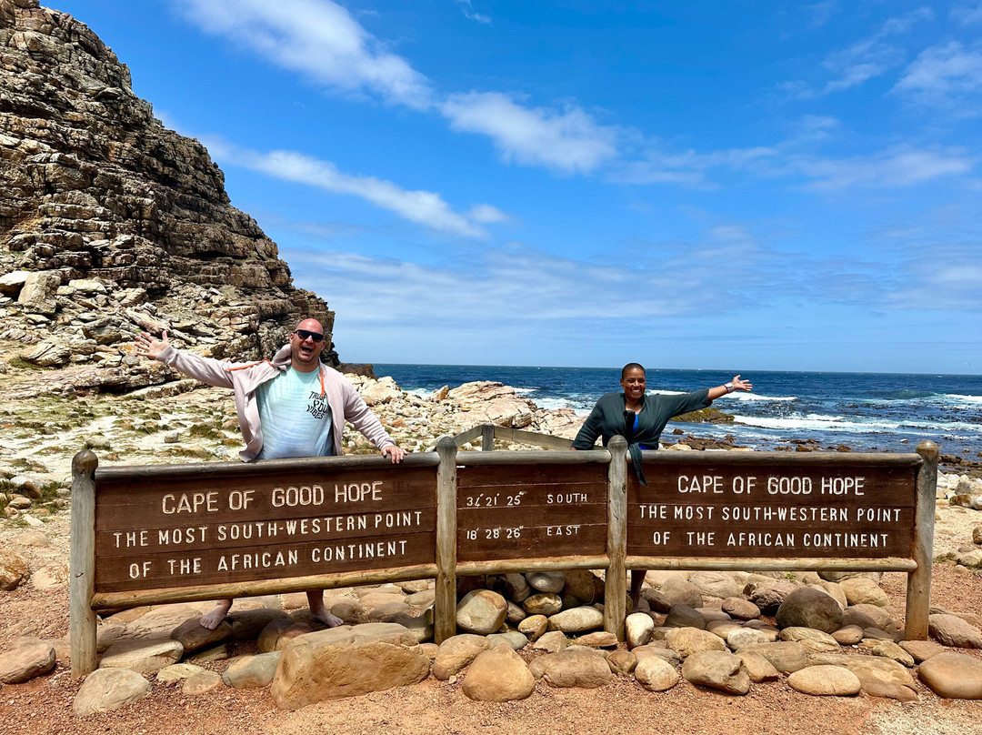Stefanie holte uns pünktlich an unserem Hotel ab und begleitete uns den ganzen Tag in ihrem komfortablen Auto. Die Tour führte uns zu den bekanntesten Highlights, wie dem Kap der Guten Hoffnung, sowie zu echten Geheimtipps abseits der typischen Touristenpfade. Besonders beeindruckend waren die atemberaubenden Ausblicke, die wir an diversen Fotospots und entlang der Küstenstraße Chapman’s Peak genießen konnten. Ein besonderes Highlight war der Besuch bei den Pinguinen – so nah waren wir diesen faszinierenden Tieren noch nie!