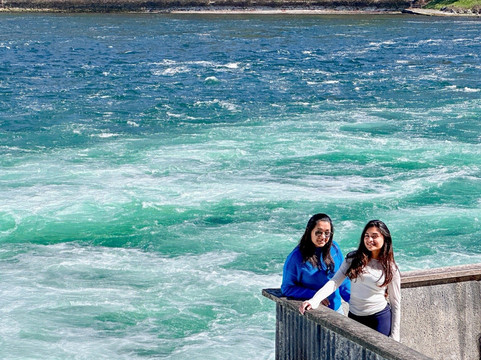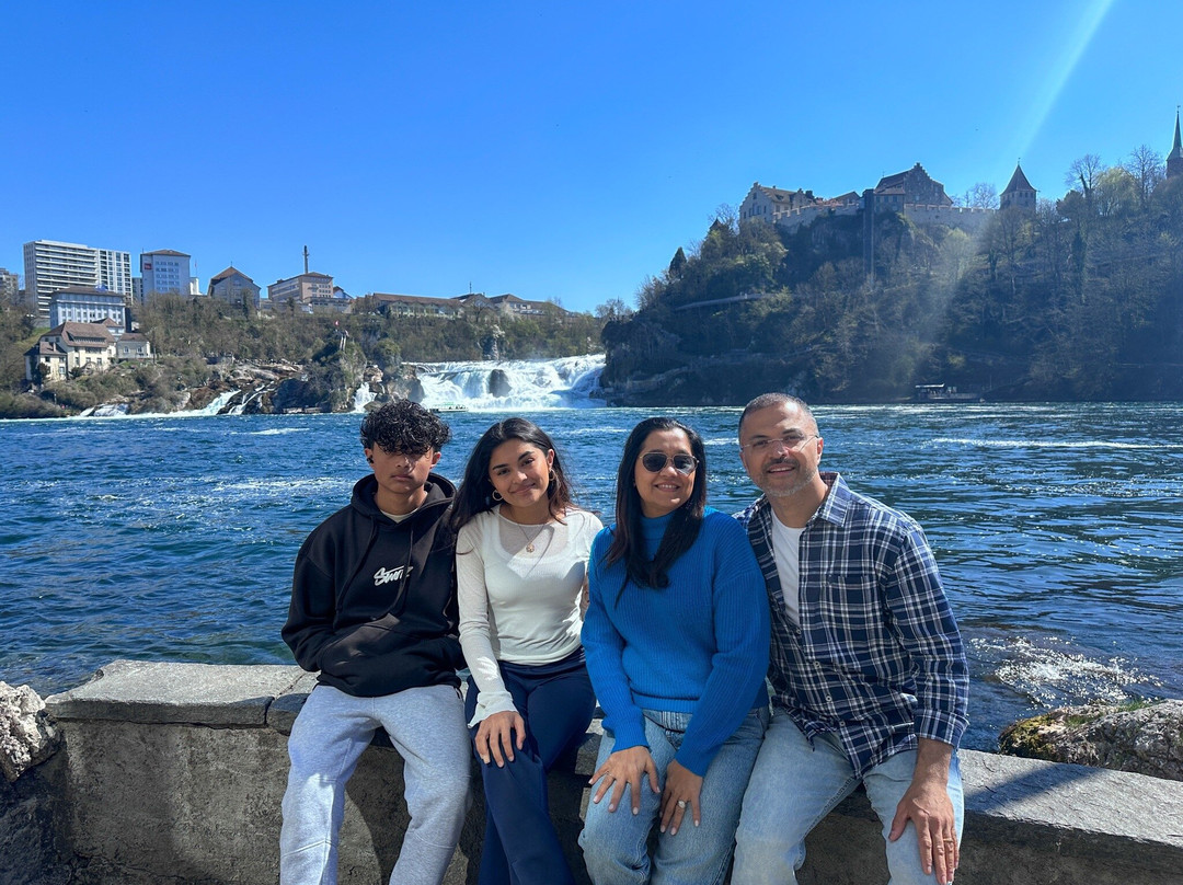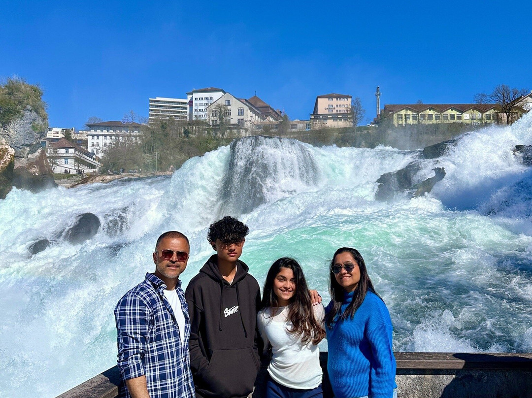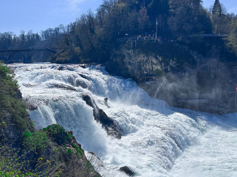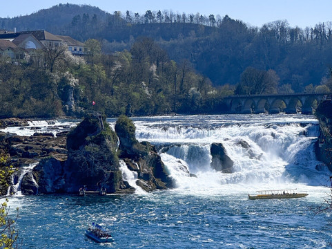 我们今天睡了个懒觉,早上 10 点才离开公寓。我们从苏黎世中央火车站乘火车出发,大约 11:30 到达莱茵瀑布。一下火车,莱茵瀑布就映入眼帘。当你置身其中,那种震撼人心的景象难以用语言形容。瀑布气势磅礴,令人叹为观止。莱茵瀑布是欧洲最大的瀑布,为游客呈现了一场视觉盛宴!这座令人叹为观止的自然奇观形成于 17000 年前,如今已成为世界各地无数游客的必游之地。