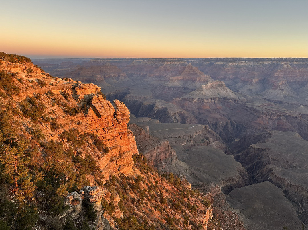 翻译:对于热爱自然和户外活动的人来说,大峡谷国家公园是必游之地。这次我只去了公园的南缘。广袤的沙漠景观和险峻的悬崖令人叹为观止。照片和视频无法真实地展现这种体验。每个视角都提供了一个全新的、令人惊叹的视角。随着阳光的照射,峡谷的色彩在一天中不断变化,每次欣赏都像是在欣赏一个全新的景色。这里的日出和日落令人难忘。乘坐公园内的免费班车是游览边缘众多观景点的最佳方式。公园的观景车道,例如沙漠景观车道,也能从不同角度欣赏到峡谷的壮丽景色。徒步下到峡谷,您可以从不同的角度欣赏峡谷,还可以近距离观察那些色彩斑斓的岩层。我推荐亮角步道和南凯巴布步道。不要错过一些最佳观景点,例如马瑟角(日出和日落,位置便利,靠近游客中心)、霍皮角、利潘角、亚基角、亚瓦派角和沙漠景观瞭望塔。总而言之,大峡谷南缘是一个真正令人惊叹的地方!它能让你感受到大自然的威力。