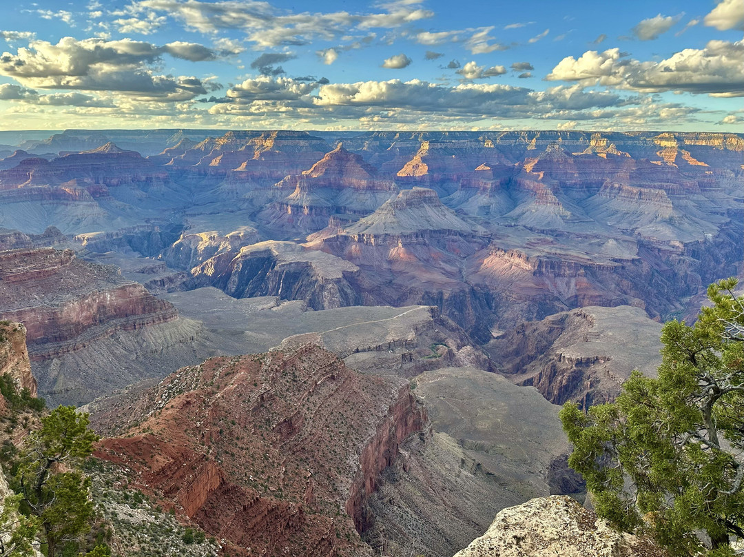 点评:The Grand Canyon National Park is a must-see destination for anyone who loves nature and the outdoors. This time I only visited the South Rim part of the park. The vast desert landscapes and dramatic cliffs are simply breathtaking. Pictures and videos don’t do the actual experience justice. Every viewpoint offers a new, stunning perspective. The colors change throughout the day with the sunlight, making it feel like a new scene every time you look. Sunrise and sunset here are unforgettable. Using the free shuttle service in the park is the best way to visit many scenery viewpoints along the rim. The park's scenic drives, such as Desert View Drive, also offer stunning views of the canyon from various angles. Hiking down into the canyon gives you different view aspect of the canyon, and you can take closer look at those colorful rock formations as well. I would recommend Bright Angle Trail and South Kaibab Trail. Don't miss some of the best view points, such as Mather Point (sunrise and sunset, conveniently located near the Visitor Center), Hopi Point, Lipan Point, Yaki Point, Yavapai Point, and Desert View Watchtower. Overall, the Grand Canyon South Rim is a truly amazing place to visit! It's a place that makes you appreciate the power of nature.