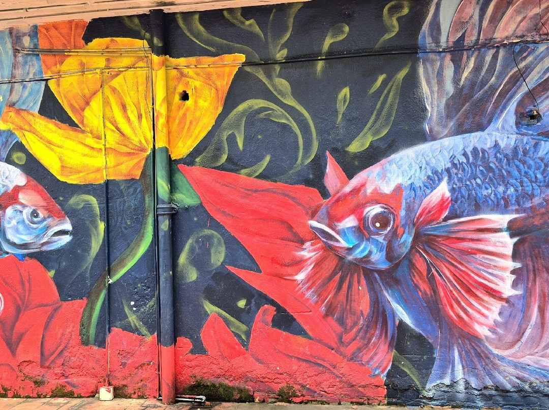 之后,我们决定在镇上的这片区域四处走走,欣赏街头艺术壁画。居銮的壁画与我在新山和古来看到的有所不同。它的主题是当地普通百姓的生活方式、漫画蝙蝠侠和田园诗般的火车站。街头艺术巷中间的一家古董店为整个氛围增添了另一种怀旧气息。