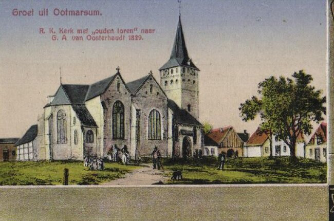 翻译:早在十二世纪中叶,就有文献记载奥特马瑟姆有一座教堂,但该教堂在十二世纪末被德伦特的敌军摧毁。十三世纪中叶,新教堂开始建造,并为现在的罗马天主教圣西蒙和犹大家教堂奠定了基础。这座教堂拥有三条通道、两条侧廊和一个三面封闭的唱诗班席,采用威斯特伐利亚罗马哥特式建筑风格。教堂由本特海默砂岩建造。教堂一直持续到十九世纪,新元素往往体现出新哥特式建筑风格。最初,西蒙和犹大家教堂有一座厚重的方形砂岩塔楼。1842年,这座罗马式塔楼因破旧不堪而被拆除。令人遗憾。作为替代,教堂在教堂中殿的前屋顶上安装了一个带有灯笼的大型屋顶塔楼。教堂本身结构优雅,但风格上与中殿和唱诗班略有冲突。最后……教堂内部主要保留了19世纪的风格。主入口旁有一个非常漂亮的砂岩洗礼盆,可能建于13世纪。1626年,教堂被改革派没收。他们一直使用到1810年。同年,在法国占领者的压力下,教堂被归还给天主教社区。改革派在总市场(Ganzenmarkt)建造了一座规模小得多的新教堂。圣西蒙犹太教堂(HH. Simon en Judaskerk)非常美丽,尤其是其罗马式外观,尽管经过翻修,仍然清晰可见。