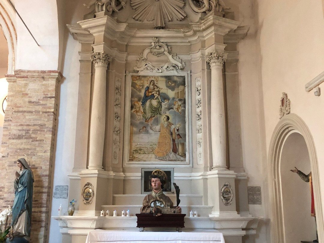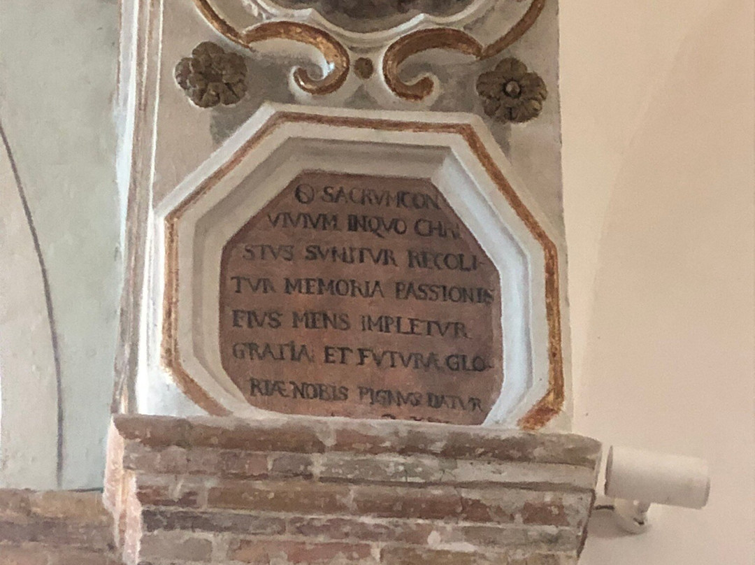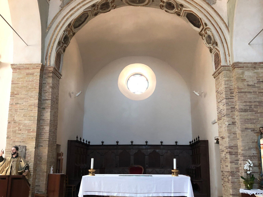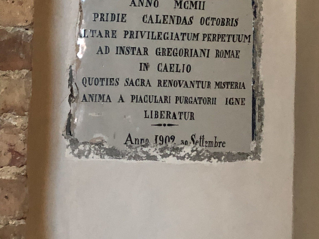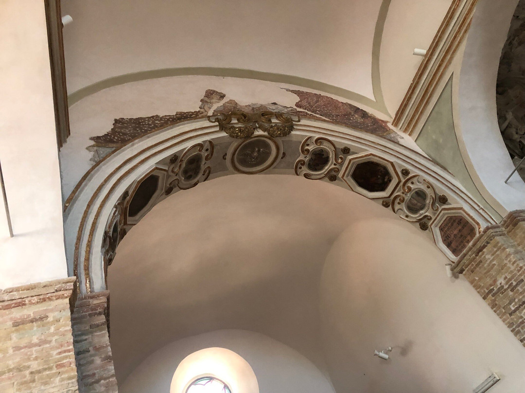 Dentro , mi hanno colpito : la prospettiva dei due colonnati in laterizi 🧱 che dividono la Navata in tre aree , l’arco lavorato del Presbiterio , l’Altare Maggiore ed i due minori ai lati , alcuni “ arredi sacri alle pareti “ realizzati in ceramica policroma e finemente lavorata !
