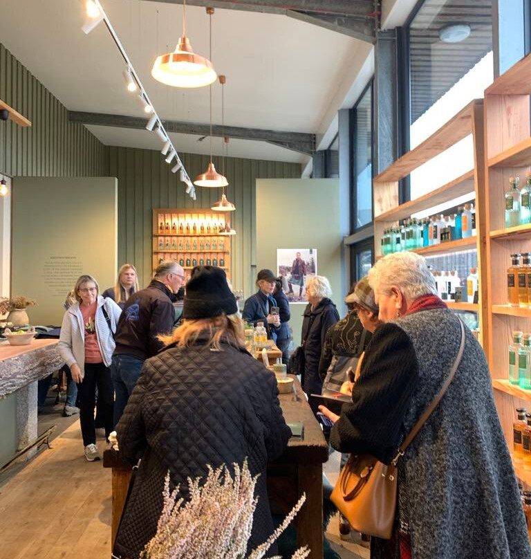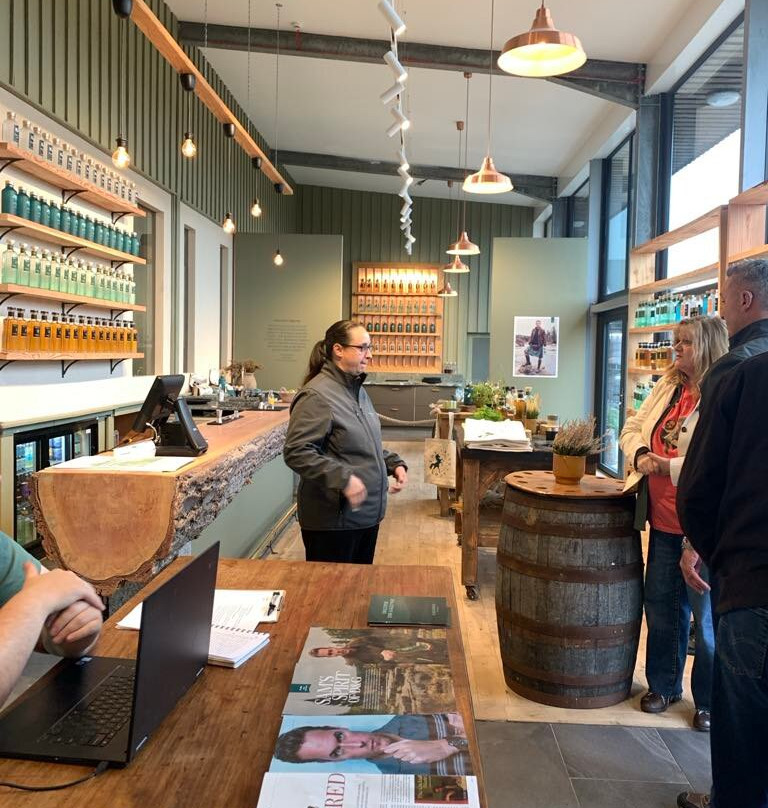 点评:My tour partner and I took a group of 30 of my blog readers (yes, Outlander) to Galloway Distillery on October 13, 2025. The decor is modern and beautiful. We did a tour and a tasting. I don't know much about making spirits, but Jude gave us a great tour, and it's obvious that making spirits is her passion. What stood out to me most was that Galloway Distillery is committed to the Galloway area - and uses all hand picked local plants in the making of their spirits. Though I am far from a spirits connoisseur, but I do know quality when I taste it. The Hills and Harbour gin was hands down the best gin I've ever tasted. I also enjoyed their vodka mixed with ginger beer, but the Sassenach blended whisky was my favorite of all - smooth, and delicious. I don't generally like peaty whisky, and this one is not, but there is a note that floats in perfectly, just to remind you you're in Scotland. I would love for them to add in some scarves in the swag shop, and I wanted a baseball cap with a G, but the ones they have now didn't fit me well - they are a little baggy in the front. Love the attention to detail everywhere, including the color scheme, right down to blue paper towels in the bathroom! Thanks to Dave and Jude for a joyful experience! xo Courtney ~ Outlander Behind the Scenes