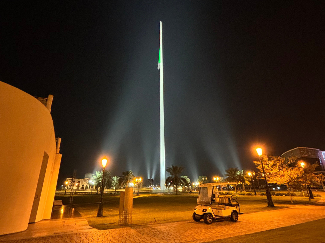 点评:Flag Island in Sharjah is truly a beautiful and peaceful retreat. The main highlight is the impressive flagpole, soaring 123 meters high with the UAE flag fluttering proudly. Surrounding the base are plates representing the seven emirates, symbolizing unity and local pride.