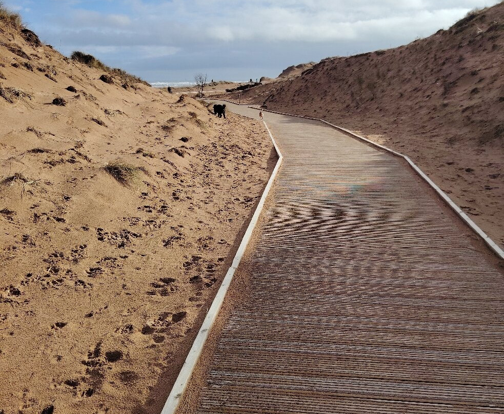 结果……哇!我们果然没失望!这里真是个美丽的地方!新建的木栈道和海滩美得令人惊叹,原始而洁净,北海的咆哮声更是锦上添花!我们是在涨潮前几个小时去的,那时沙滩上几乎没有可以走的路,而且还有一些汹涌的海浪!🫣 所以,一定要查好潮汐时间!!