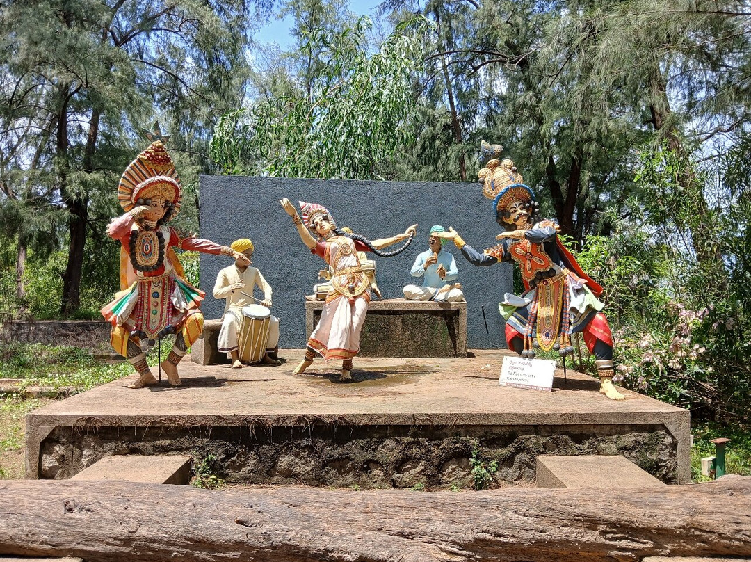 由于我们这次参观 INS 战舰博物馆没有成功,我们前往附近的岩石花园,值得一游。它是用当地的岩石和石头在海滩岸边建造的。人们可以看到各种岩层和雕塑,描绘了卡纳塔克邦的传统和习俗。入场费为每人 40 卢比,参观时间为上午 10 点至下午 1:30 和下午 3 点至晚上 7:30。没有时间限制,您可以花尽可能多的时间拍摄一些美丽的照片。游览整个花园大约需要 1 小时。这是一个美丽的地方,一天中游览的最佳时间是晚上。虽然这是一个花园,但没有洗手间设施。花园状况还不错,应该努力翻新并保持清洁。参观完岩石花园后,我们前往卡尔瓦尔市场,该市场以其充满活力的氛围和鱼类等当地特色菜而闻名。我们买了一些干鱼和芒果。