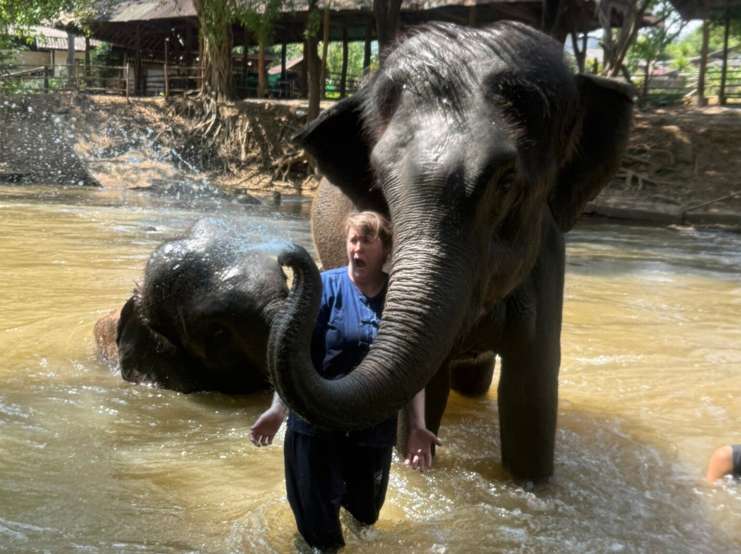翻译:我们预订了泰国大象之家(Thai Elephant Home)的“无鞍骑象和洗澡——全天”行程,包含午餐。网上有很多关于这家公司对待大象方式的评价,褒贬不一。这家公司拥有的10头大象都得到了很好的照顾。他们限制每次骑象只能一人,避免大象过度劳累。所有的大象都是家养的,行为举止非常温顺,他们使用正向强化的方式来引导大象做出他们想要的反应。我们被安排到酒店接走,带到营地,穿上大象和驯象师的服装,并接受了关于泰国大象的简短介绍。之后,我们开始与大象见面,并喂它们吃糖。每头大象都有自己的驯象师,每天与大象相处12到14个小时,彼此建立了非常亲密的关系。每位参与者都骑了一头大象,并学习如何发出简单的指令。我们骑着大象大约一个小时,穿过河流进入丛林,大象们在泥地里玩耍、吃东西,而我们则享用午餐,放松身心。午餐后,我们骑着海豚返回河边,有机会给大象洗澡,并和它们一起在水中嬉戏,这对大象和我们来说都非常清爽。全程都有驯象师陪同,我感到安全又安心,他时而跟在每头大象身后,时而与它们并肩而行。这真是一次毕生难忘的体验。我强烈推荐这家公司,他们善待大象,专业敬业,并且真心关爱大象和游客。